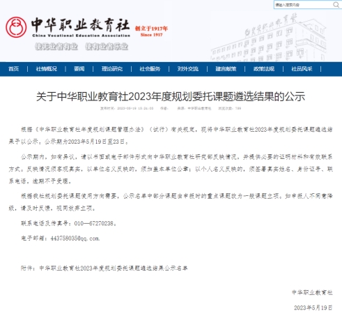 近日,中华职业教育社2023年度规划委托课题拟立项名单公示,我校党委书记余荣宝教授主持申报的《乡村振兴背景下地方高职院校“政校企”协同培养系统的构建与实践研究》课题获批立项。