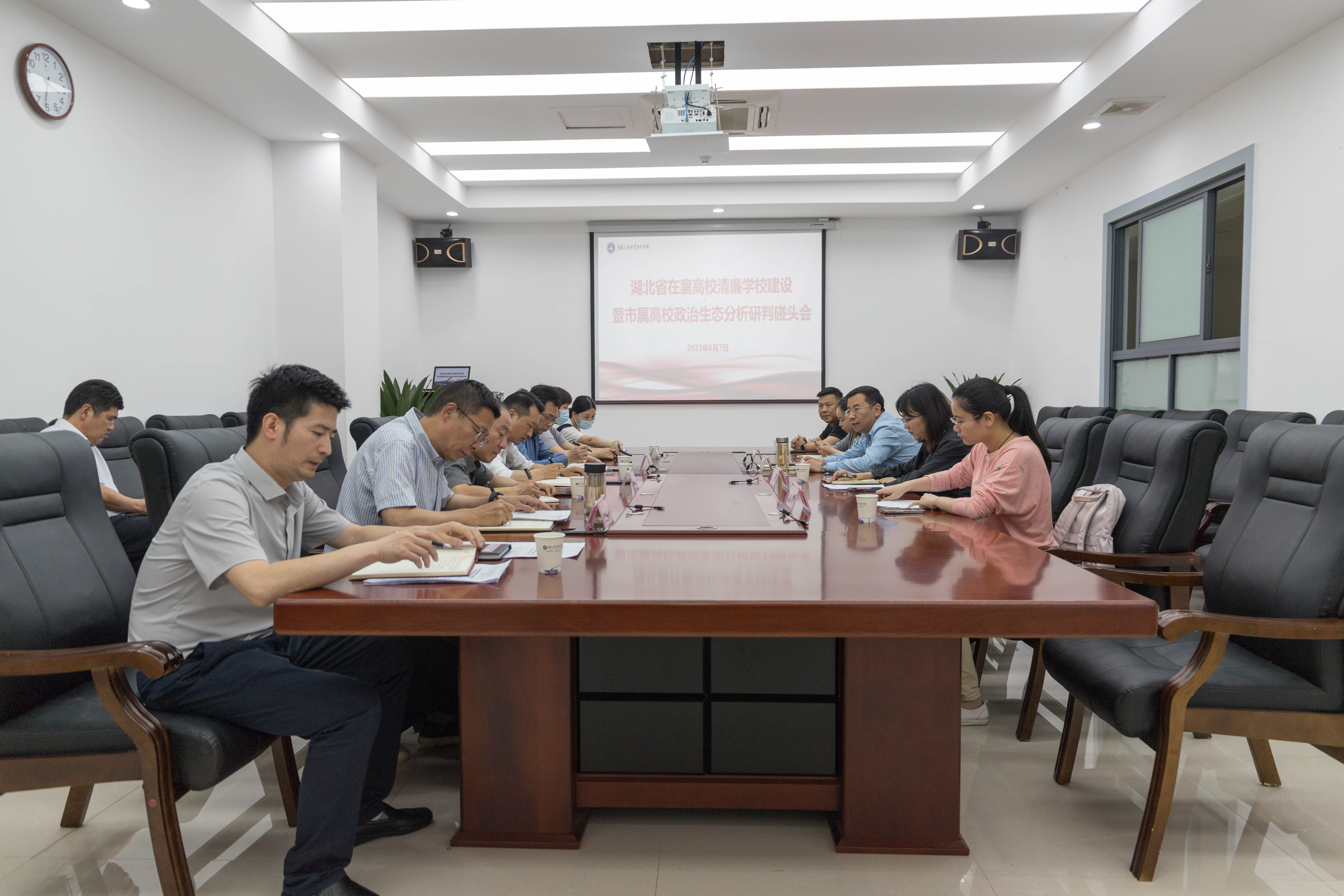 6月7日下午,省在襄高校清廉学校建设暨市属高校政治生态分析研判工作推进会在我校召开,市教育局副局长边强出席会议并讲话。湖北文理学院、襄阳职业技术学院、湖北文理学院理工学院相关负责人,学校纪委书记、监察专员丁波参加会议。
