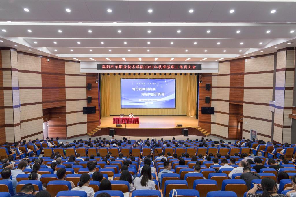 武汉职业技术学院教育研究院院长席波、襄阳职业技术学院徐鸿涛、我校副校长傅强,分别从课程思政、优质课堂打造、助力学生成长工程等方面为全体教职工作了精彩报告。