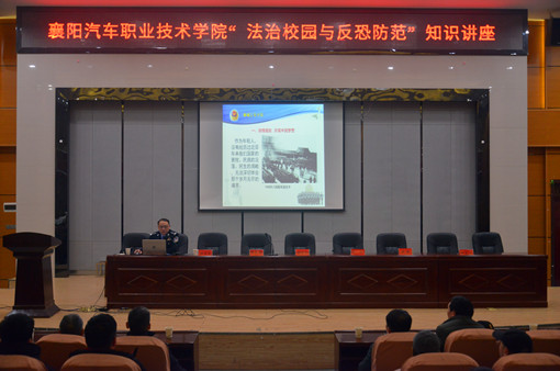 2月26日,我院“法制校园与反恐防范”知识讲座在学术报告厅举行。院领导熊良猛出席会议,襄城区公安分局反恐办教导员谢进军,主任刘琼,尹集派出所所长周成胜,学工处、保卫处相关负责人,学院师生代表300余人参加了此次活动。会议由学工处副处长何晓勇主持。
