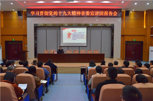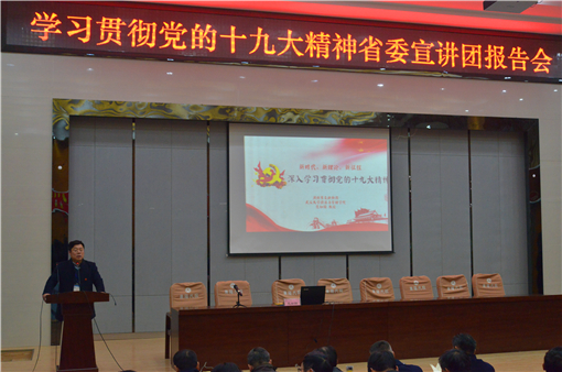 (通讯员:沈晨)12月7日上午,省委宣讲团学习贯彻党的十九大精神报告会在我校学术报告厅举行。省委宣讲团成员、武汉大学经济与管理学院教授范如国主讲,学校领导、党员及教师代表、学生代表200余人聆听了报告。副院长王达文主持报告会。