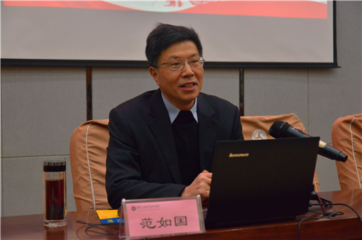 范如国教授以“新时代新理念新征程 深入学习贯彻党的十九大精神”为主题,从党的十九大会议盛况、大会主题和主要成果、过去五年的历史性成就和历史性变革、中国特色社会主义进入新时代、我国社会主要矛盾的转化、习近平新时代中国特色社会主义思想、新时代中国特色社会主义发展的战略安排、我国经济社会发展重大战略部署、加强党的建设等九个方面对党的十九大精神进行了全面、系统、深入的解读。他强调,高校是党领导下的社会主义大学,党委必须牢牢坚持党对学校各项工作的全面领导,不忘初心、牢记使命,团结带领广大师生,牢固树立一流意识,紧紧围绕一流目标,认真贯彻一流标准,加快内涵式发展,努力培养更多德智体美全面发展的社会主义建设者和接班人。