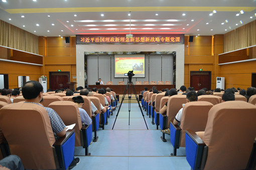 (通讯员:沈晨)6月1日下午,“习近平治国理政新理念新思想新战略”专题党课在我校学术报告厅举行,党委书记许云亲自授课。在校领导班子成员、中层及以上干部、在职的全体党员,以及离退休部分党员代表230余人参加。