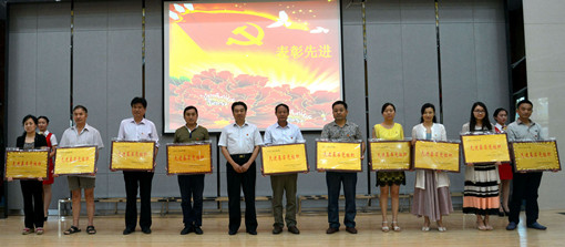 纪委书记郑建宣读了学院《关于表彰2015-2016学年度先进基层党组织、好支书、优秀党务工作者、优秀共产党员的决定》文件,学院领导为受表彰的组织和个人颁发奖牌和荣誉证书。此次共表彰先进基层党组织10个、好支书8位、优秀党务工作者16位和学院优秀共产党员53人。