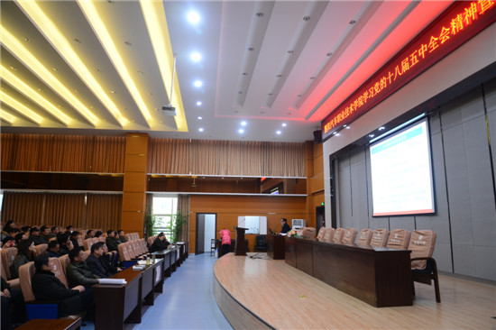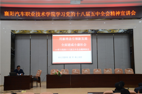 (通讯员:傅强)12月24日下午,学院组织召开了十八届五中全会辅导报告会,学院领导班子、中层干部、副高以上职称的教师、入党积极分子共同学习报告。学院副院长张建成主持会议。湖北文理学院经济与政法学院党委书记、思想政治理论课部主任,教授,硕士生导师聂军做了题为《用新理念引领新发展 全面建成小康社会》的报告。