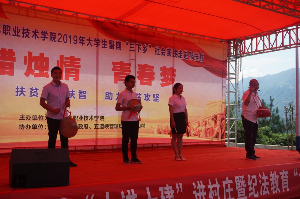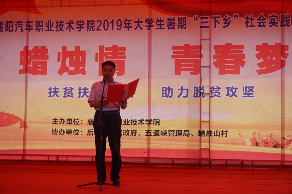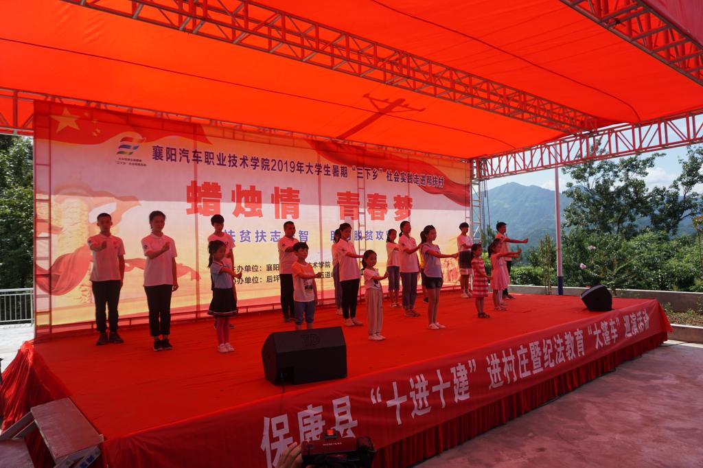 用青春助力脱贫攻坚,用爱心传递青春梦想。7月31日下午,“蜡烛情 青春梦”公益汇演暨 2019 年大学生暑期“三下乡”社会实践走进帮扶村表彰仪式在保康县后坪镇蜡烛山村圆满举行。学院党委书记许云,党委副书记、院长耿保荃,副院长管用才、王达文,院领导熊良猛参加活动。保康县委常委、县纪委书记刘三元应邀出席。