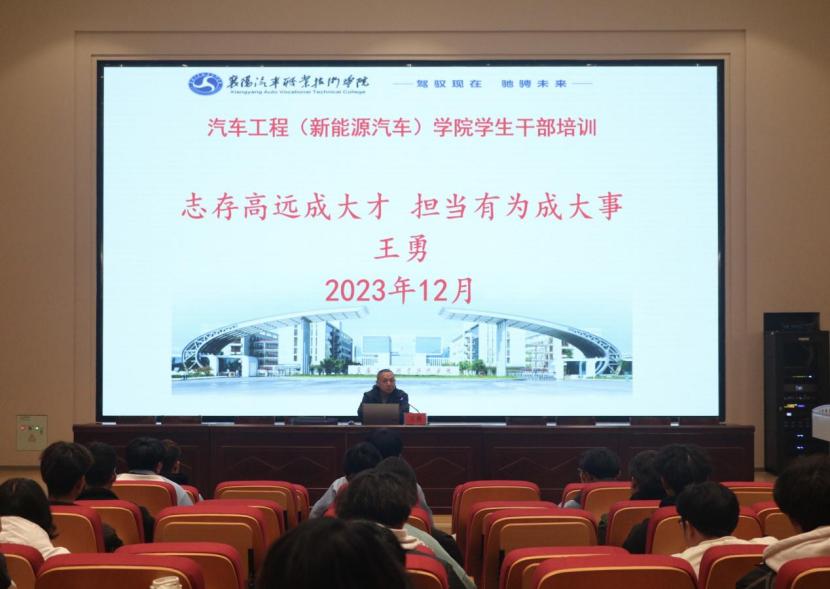 为进一步提高我院学生干部队伍整体素质,充分发挥学生干部在学生中的桥梁和纽带作用,提高学生干部的理论水平和业务能力。12月6日,汽车工程(新能源汽车)学院院长王勇为学生干部们带来“志存高远成大才 担当有为成大事”主题讲座。