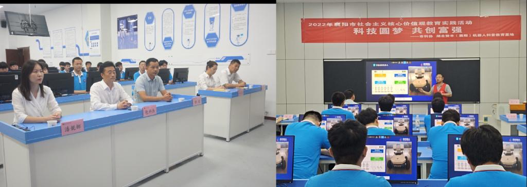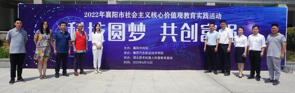 为进一步培育和践行社会主义核心价值观,6月16日,由襄阳市科协主办、襄阳汽车职业技术学院承办、湖北贽丰机器人技术有限公司协办的“科技圆梦 共创富强”社会主义核心价值观教育实践活动在我校智能制造学院机器人科普教育实践基地举行。出席本次活动的有:襄阳汽车职业技术学院党委委员副校长包科杰、襄阳市科协普及部副部长黄建、湖北贽丰机器人技术有限公司董事长助理潘妮娜等科协、学校、企业领导及工业机器人专业学生。
