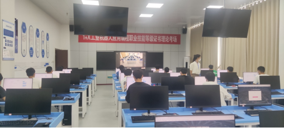 项目考证单位是北京赛育达科教有限公司。考前,经学生报名、专业教师遴选、二级学院审核,最终确定15名学生参加考证。考试分为理论考核(理论考试、安全测评)、实操考核。理论考核采取闭卷机考形式,全面考核学生理论基础和安全操作能力,实操包含离线编程及验证、综合应用编程两部分。考核过程中,北京赛育达科教有限公司作为1+X工业机器人应用编程职业技能等级证书培训评价组织,襄阳贽丰机器人有限公司技术人员作为企业督导,对整个考核过程进行了全程指导和监督。