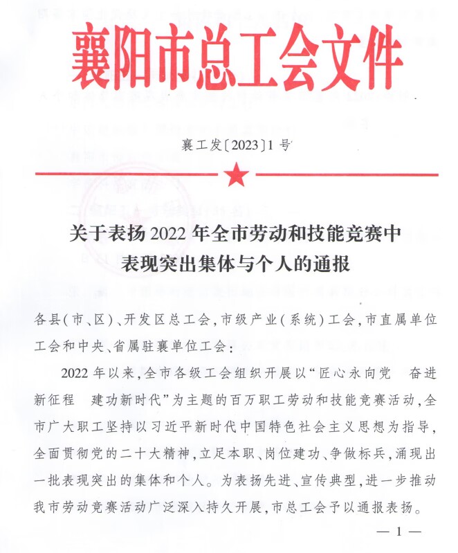 此次襄阳五一劳动奖章评选是襄阳市总工会2022年组织开展以“匠心永向党 奋进新征程 建功新时代”为主题的百万职工劳动竞赛活动中涌现出一批劳动竞赛表现突出的集体和个人。此次表彰的有襄阳五一劳动奖状(4个)、襄阳五一劳动奖章(55名),智能制造3人获得襄阳五一劳动奖章。
