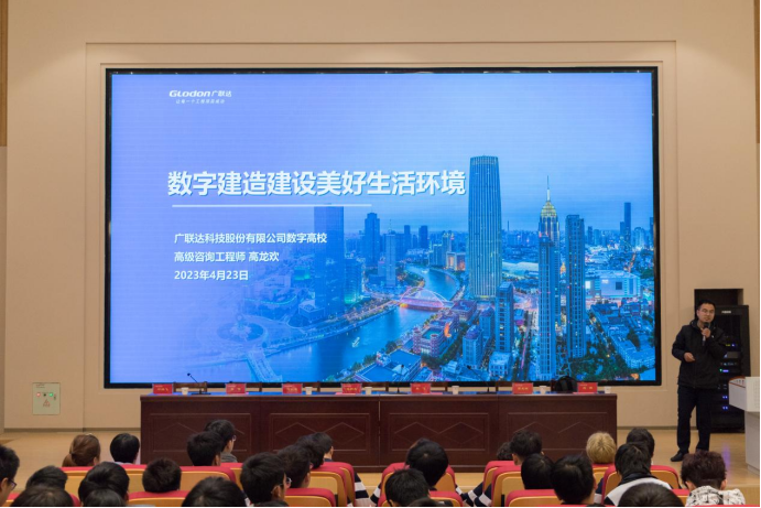 最后,广联达科技股份有限公司华中区方案经理高龙欢开展题为数字建造建设美好生活环境的讲座。