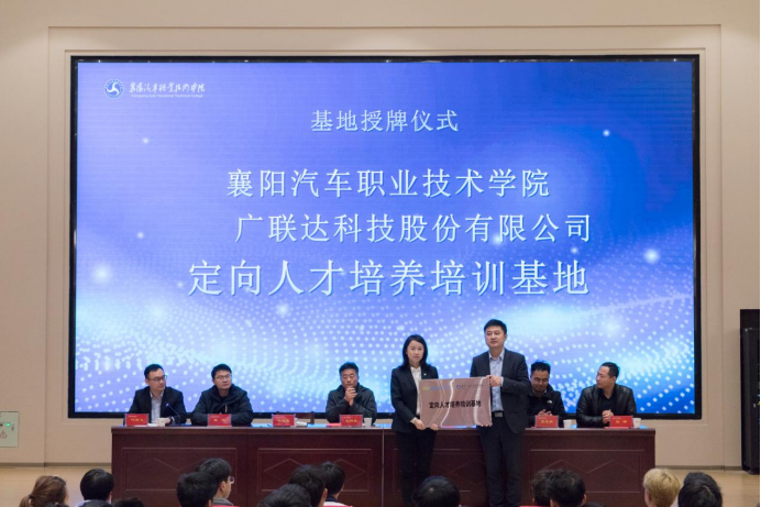 何红霞代表学校进行“襄阳汽车职业技术学院-广联达科技股份有限公司定向人才培养培训基地”授牌