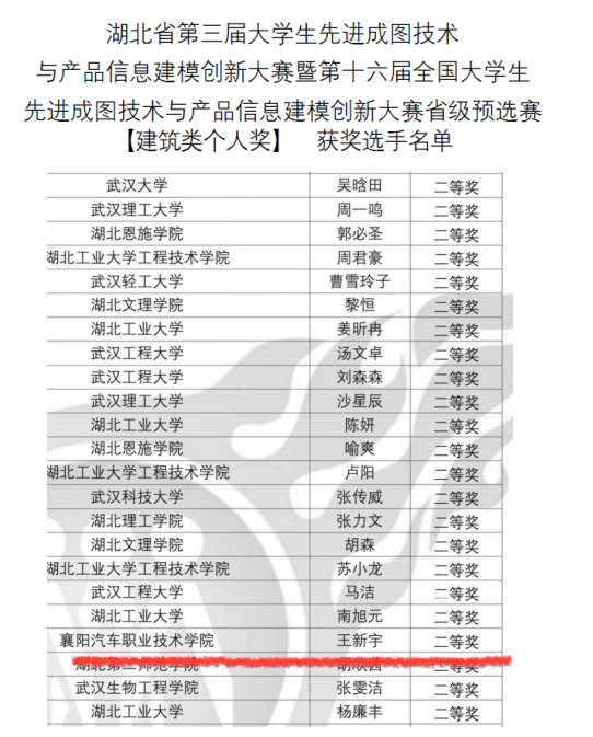 热烈祝贺我校学子在湖北省第三届大学生先进成图技术与产品信息建模创新大赛暨第十六届全国大学生先进成图技术与产品信息建模创新大赛省赛取得新突破