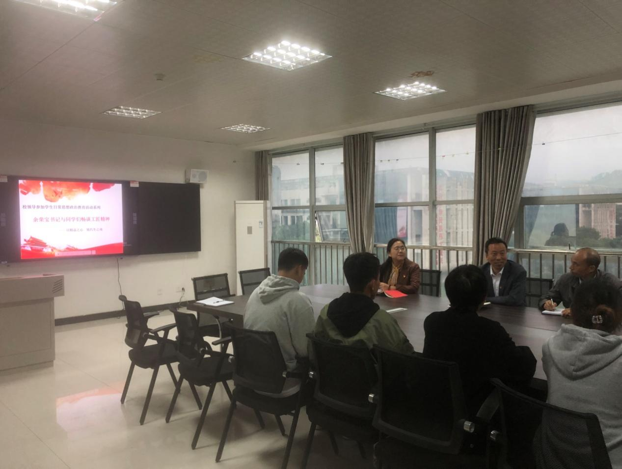 为了落实立德树人根本任务,助力学生成长,9月25日下午,学校党委书记余荣宝在双创楼四楼马克思主义学院会议室与建筑工程学院工程管理2203班部分学生共同开展校领导参与学生日常思想政治教育活动。活动中,余书记与同学们畅谈工匠精神,并和同学们一起憧憬人生理想、勾勒职业规划。