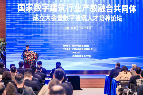 10月22日,国家数字建筑行业产教融合共同体成立大会暨数字建筑人才培养论坛在北京举行,该大会是由广联达科技股份有限公司、东南大学、浙江建设职业技术学院联合牵头,汇聚了全国各地行业组织、学校、科研机构、上下游企业共342家单位共同参与。会上,国家数字建筑行业产教融合共同体正式成立,并审议投票通过了《国家数字建筑行业产教融合共同体章程》、国家数字建筑行业产教融合共同体成员单位建议名单,我校当选理事单位。