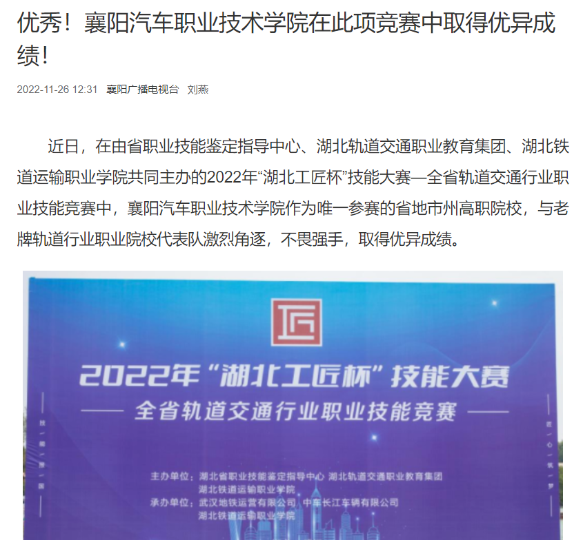 《汉水襄阳》优秀!襄阳汽车职业技术学院在此项竞赛中取得优异成绩!