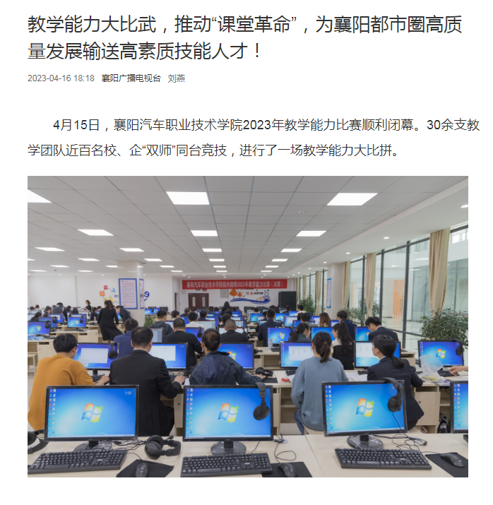 近年来,襄阳汽车职业技术学院以教学能力比赛为抓手,致力教师团队建设,打造了一批能教会研精技的教学创新团队;持续深化教学改革,推进“岗课赛证”教学模式改革,推动“课堂革命”,学校教学质量持续提高,为襄阳都市圈高质量发展输出一批又一批的高素质技术技能型人才。